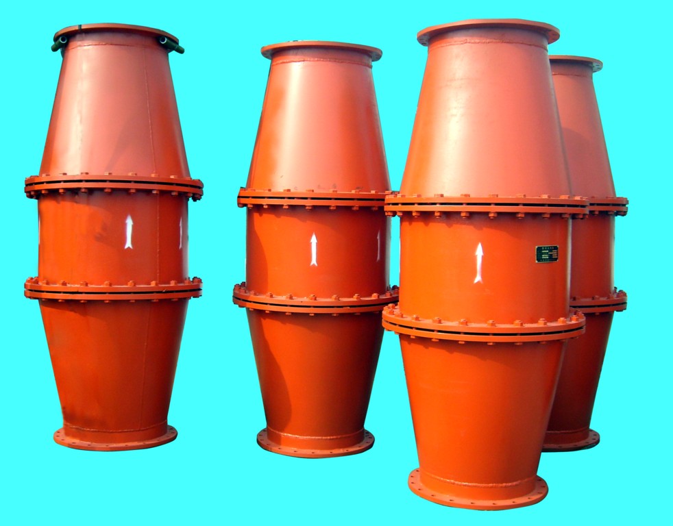 該產(chǎn)品由法蘭盤、異徑管、擋圈、進(jìn)氣管、出氣管、錐筒體、圓鐵筒、阻火芯、密封件等組成。